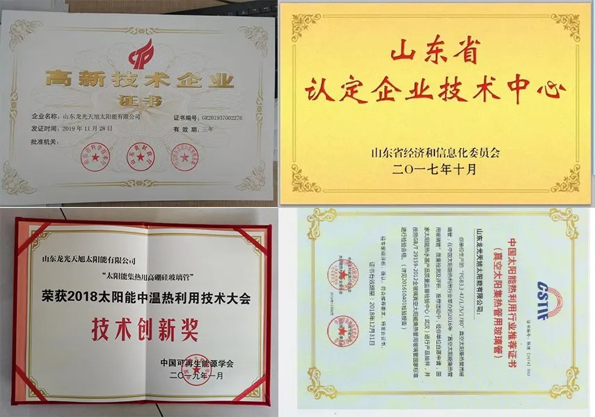Shandong Longguang Tianxu Solar Energy Co., Ltd., established in 2002 with a registered capital of 100 million yuan, is located in Zhucheng City, known as the "Hometown of Emperor Shun" and the "Dragon City." This company is a high-tech enterprise engaged in the research, development, production, and sales of high borosilicate special glass and new energy products such as solar thermal, photovoltaic, and air source heat pumps, possessing independent import and export rights. Its main products include: high borosilicate solar glass tubes, solar water heaters, medium- and high-temperature collector tubes, all-glass vacuum collector tubes, waterless antifreeze heat pipes, solar thermal engineering projects, and air source heat pumps. The company has successively won numerous honors such as "Shandong Famous Brand," "Shandong Famous Trademark," "National Leading Brand in Solar Thermal Industry Quality," "Contract-Abiding and Creditworthy Enterprise," and "Shandong Excellent Brand." It is a national high-tech enterprise with two provincial and municipal-level science and technology research and development platforms. It is a member unit of the National Solar Energy Standardization Technical Committee. As a leading backbone enterprise in the industry, Tianxu Company has participated as a major unit in the drafting of several national and industry standards, including "Technical Requirements for All-Glass Vacuum Collector Tubes" and "Technical Requirements for Flat-Plate Solar Thermal Collectors."